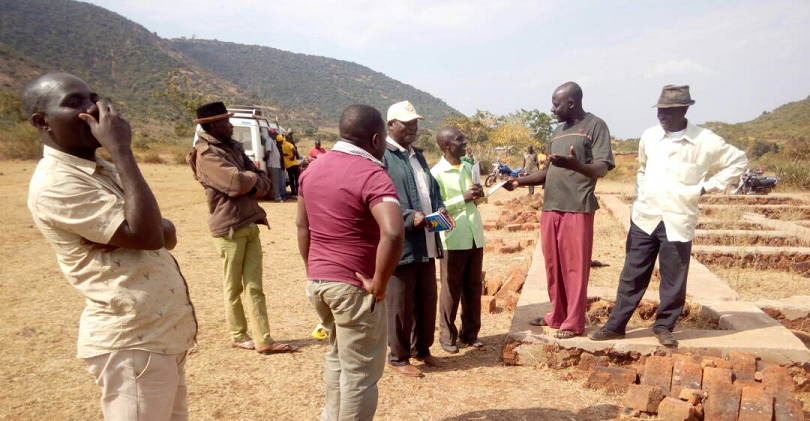 Viongozi wa serikali ya kijiji, kata na Halmashauri wakijadiliana mara baada ya kukamilika kwa zoezi la upimaji wa eneo ambalo itajengwa zahanati ya kitongoji cha Burungu.