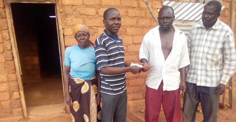 Msaidizi wa Mbunge, Fedson Masawa (wa pili kushoto) akimkabidhi Muriti Mafuru fedha taslimu shilingi 300,000 ambayo ni ahadi ya Mbunge wa Jimbo la Musoma vijijini Prof. Sospeter Muhongo ili kufanikisha huduma ya matibabu ya Mzee Mafuru anayesumbuliwa na tatizo la kibofu cha mkojo na tatizo la mguu.