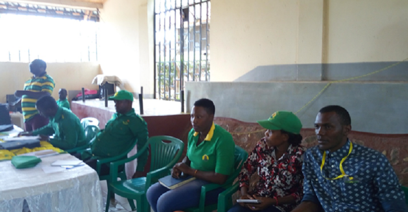 Wasaidizi wa Mbunge wa Jimbo la Musoma Vijijini James Francis (kulia) Verdiana Mgoma na Hamisa Gamba wakifuatilia Kikao cha Baraza la Umoja wa Vijana wa CCM ( UVCCM) kilichofanyika kwenye kijiji cha Suguti.