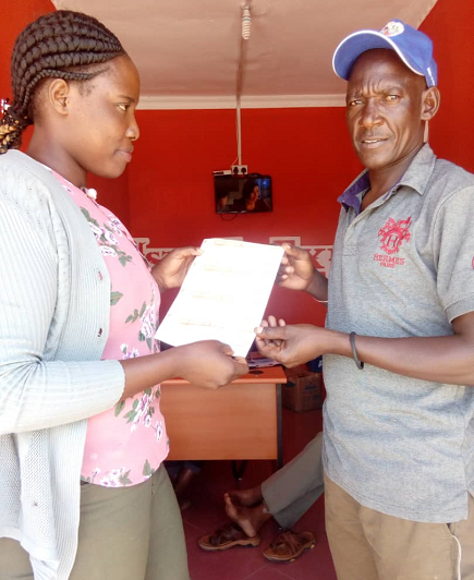 Msaidiyi wa Mbunge, Ndugu Hamisa Gamba akimkabidhi TIKETI ZA USAFIRI Kiongozi wa LIRANDI, Ndugu Mtatiro Ijanja.