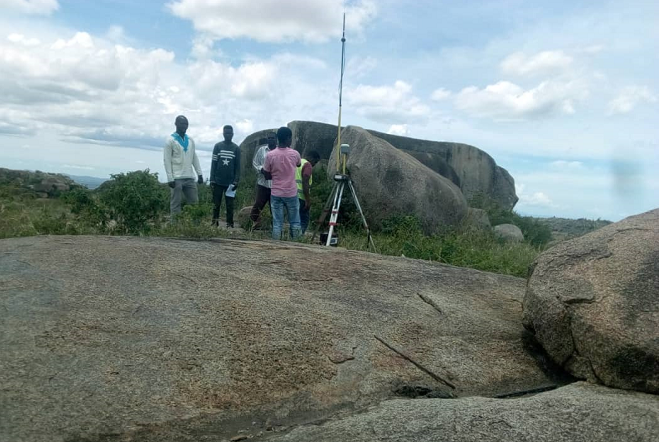 Wataalamu wakipima Eneo ambalo TANKI la usambazaji MAJI litajengwa.