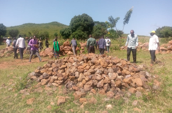 WANAVIJIJI wakisomba mawe kwa ajili ya ujenzi wa ZAHANATI ya Kijiji chao cha NYABAENGERE, Kata ya Musanja.