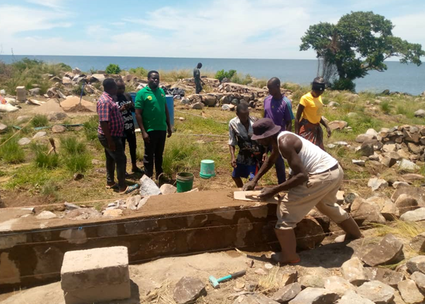 Mwanzo wa ujenzi wa Sekondari ya Kisiwa cha Rukuba - ujenzi wa msingi wa mawe wa vyumba viwili vya madarasa na ofisi moja ya walimu.