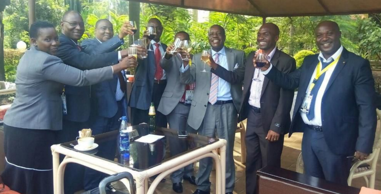 Mwaka 2016, Kampala, Uganda: Picha ya ushindi wa kufanikisha Mradi wa Bomba la Mafuta kutoka Uganda kuja Tanzania (EACOP). Timu ya ushindi ya Tanzania iliongozwa na Prof Sospeter Muhongo, Waziri wa Nishati na Madini.